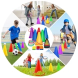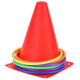 Ta set vsebuje stožce in obroče v živih barvah, ki pritegnejo pozornost in zagotavljajo zabavo pri igri. Odlični so za označevanje igrišč ali postaj.