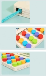 Lesena mizna igra ima različne vzorce za enostavno učenje barv in koordinacije. Spodbuja ustvarjalnost in koncentracijo otrok.
