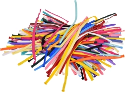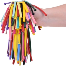V paketu najdete 100 balonov v različnih, živahnih barvah, dostavljene v originalni škatlici. Pred napihovanjem merijo približno 30 cm, kar omogoča ustvarjanje lastnih dekorativnih kompozicij kot na primer cvetje, psičke, medvedke ali kar vam dopušča vaša domišljija in spretnost.