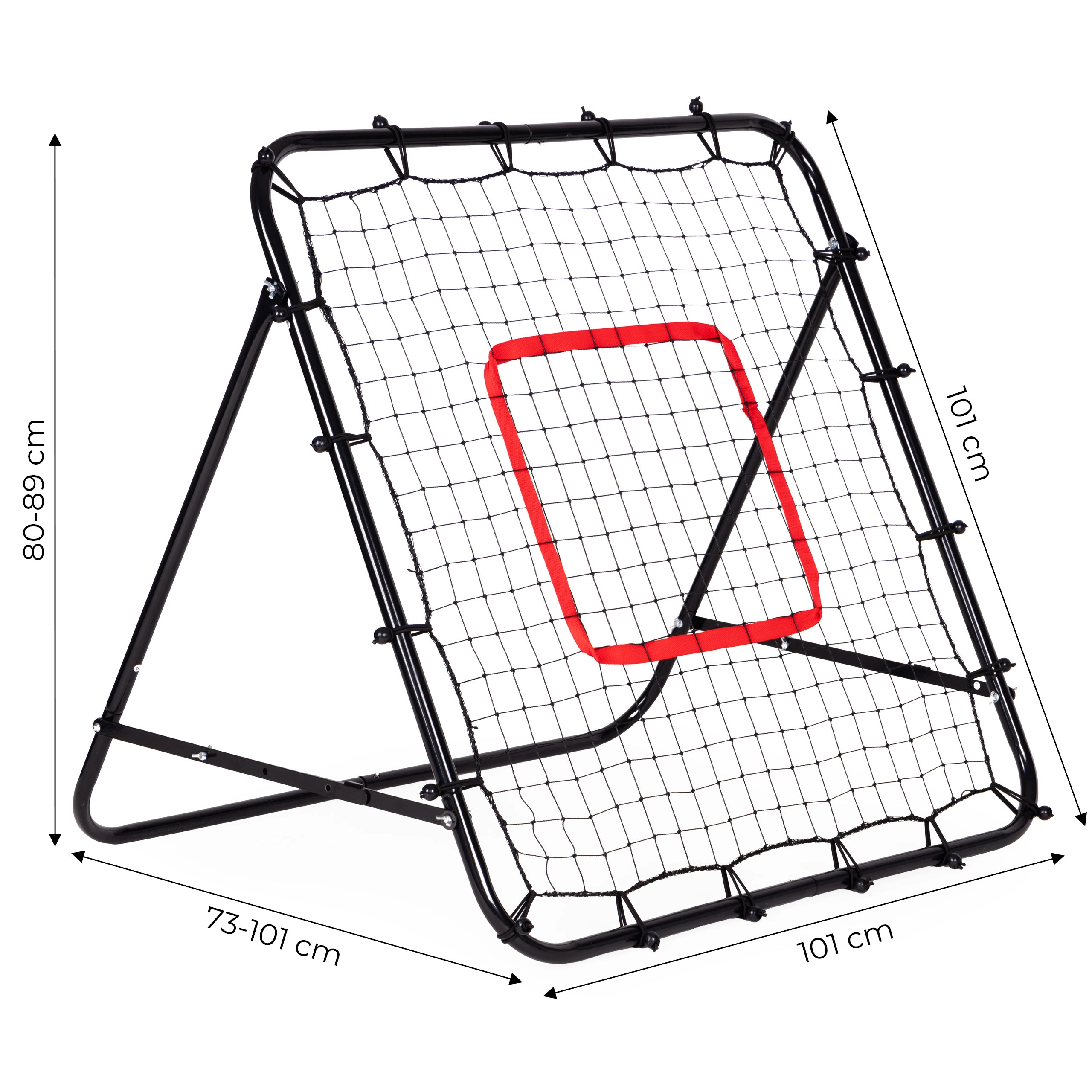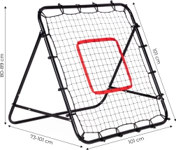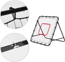 Konstrukcija: Stabilen kovinski okvir iz prašno lakirane jeklenke nudi dolgo življenjsko dobo in odpornost proti vremenskim vplivom. Odporna mreža napeta z elastičnimi bungee vrvicami poskrbi za dinamične in realistične odbitke žoge.
