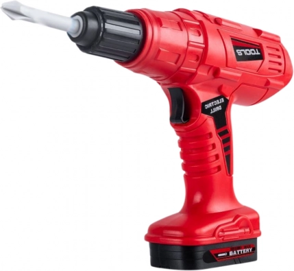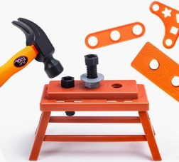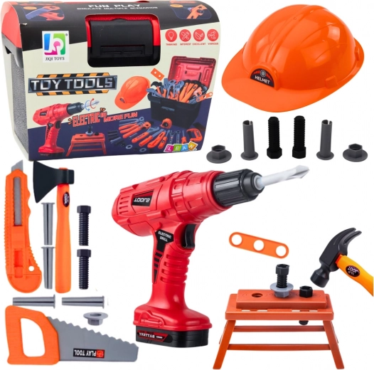 Otroški komplet orodja omogoča malim mojstrom varno igro z orodji, ki izgledajo kot prava. Električni baterijski vrtalnik ima zamenljive nastavke – ploščatega, križnega in vrtalni nastavek. Poleg tega komplet vključuje tudi delovno klop in zaščitno čelado za še večjo realističnost pri igri.