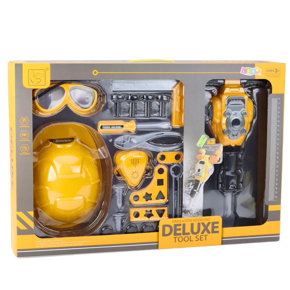 Deluxe Tool Set je popoln, realističen in privlačen komplet za otroke, ki radi opazujejo svet odraslih in sanjajo o lastnem delavnici. Ta otroški set vključuje 21 elementov, ki otroku omogočajo, da se vživi v vlogo gradbinca ali inženirja.