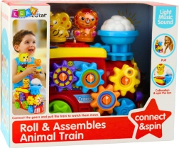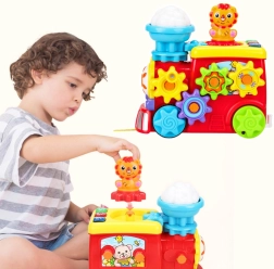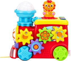 Interaktivna lokomotiva je zasnovana tako, da ne le zabava, temveč tudi razvija fino motoriko, vidno-gibalno koordinacijo in radovednost vašega otroka. Lokomotiva je opremljena z vrtečimi se zobniki, ki jih otrok lahko spravi v pogon, kar podpira razvoj natančnih gibov rok in uči osnovne mehanske odnose. Ob pritisku gumbov se aktivirajo svetlobni in zvočni učinki, ki spodbujajo otrokova čutila sluha in vida.