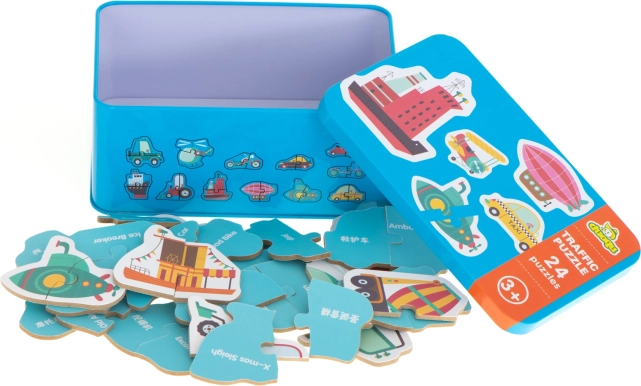 Sestavljanke so praktične za shranjevanje in prenos zahvaljujoč kovinski škatli, kar je idealno za potovanja. Ta izdelek ni le zabaven, temveč tudi poučen in spodbuja razvoj otrok.