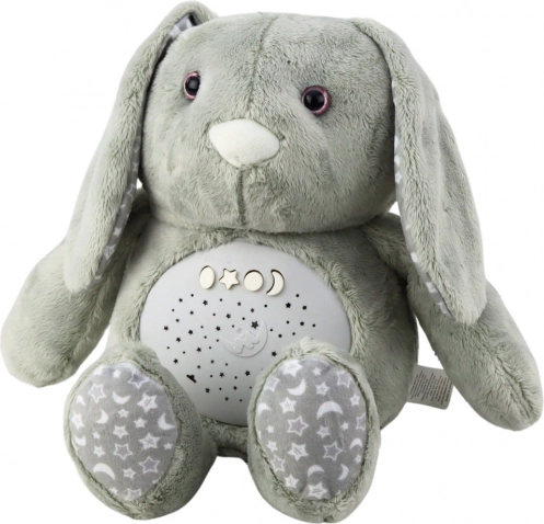 Plišasti zajček s projektorjem je idealen spremljevalec za otroke od prvih dni življenja. Mehek siv pliš z okrasnimi ušeski doda estetiko, interaktivna plošča pa olajša uspavanje.