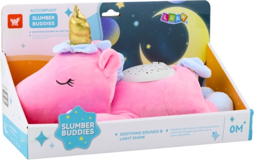 Ta plišasti samorog je zasnovan za pomirjujočo izkušnjo vašega otroka z vgrajenim svetlobnim in zvočnim projektorjem, ki ponuja nežne melodije in umirjajočo svetlobo. Popoln pripomoček za lažje uspavanje in občutek varnosti.