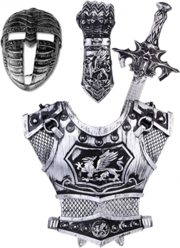Viteški komplet vsebuje vse potrebne elemente za oblikovanje popolnega viteškega lika – od oklepa, ščita in čelade do realistično izdelanega meča. Vse komponente so izdelane iz trpežne plastike, ki zagotavlja varno uporabo tudi za najmlajše otroke.