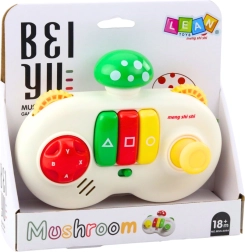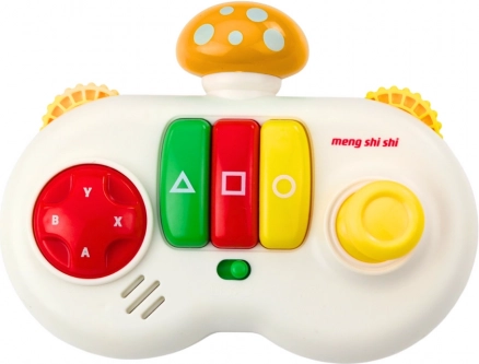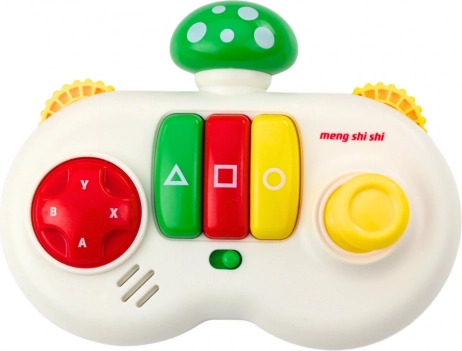 Ta barvita interaktivna igrača je zasnovana v obliki krmilnika z zgornjim delom v dizajnu gobice v rdeči, zeleni ali rumeni barvi, kar pritegne pozornost otrok. Konzola je opremljena z barvnimi gumbi, zvočnimi učinki, vrtljivimi kolesčki z izbočeno teksturo in tremi osrednjimi tipkami v obliki trikotnika, kvadrata in kroga.