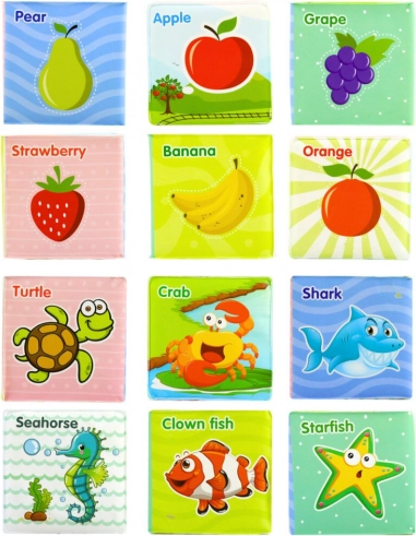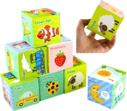Kocke vsebujejo različne slike – črke, številke ali besede v angleščini, kar podpira jezikovni in kognitivni razvoj otroka. Vsaka kocka je zasnovana tako, da spodbuja senzorično stimulacijo in razvoj fine motorike, kar omogoča otrokom, da kocke zlagajo, stiskajo, mečejo in opazujejo različne vzorce ter barve.