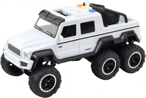 Model ima 6 masivnih koles z zarezami na pnevmatikah, kar povečuje stabilnost in mu omogoča premagovanje manjših ovir. Na strehi so štirje gumbi, ki aktivirajo zvočne učinke: zvok zagona motorja, hupa, vzvratna vožnja, sirena in daljinsko upravljanje. Poleg tega ima odpirajoča se vrata, ki povečajo interakcijo in realizem igre.