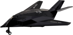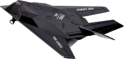 Črno vojaško lovsko letalo je popolna igrača za vse male ljubitelje letalstva. Model odraža dovršen dizajn in realistične podrobnosti, vključno z avtentičnimi napisi zračnih sil. Lovec je opremljen z zadnjim pogonom, ki omogoča samodejno premikanje po tleh po rahlem potegu nazaj.