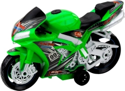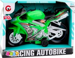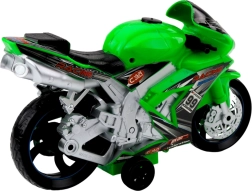 Naš zeleni dirkalni motor je izdelan iz kakovostne, trpežne plastike in je opremljen z širokimi kolesi ter stabilno oporo, kar zagotavlja varnost in udobje med igro na različnih površinah. Učinke, kot so realistični zvoki motorja in bliski svetlobe, lahko enostavno aktivirate s pritiskom na gumb, kar igri dodaja edinstveno pristnost.