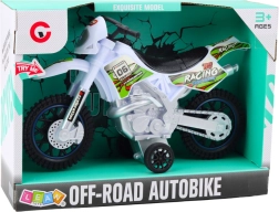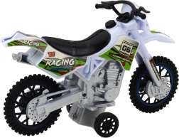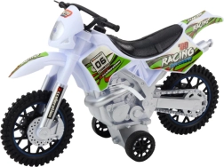 Ta motokrosni model je izdelan iz trpežne plastike, ki prenese intenzivno igro. Belo-zelena zasnova z dirkalnimi nalepkami izgleda zelo privlačno. Velika terenska kolesa zagotavljajo stabilnost in boljšo simulacijo vožnje po neravni podlagi.
