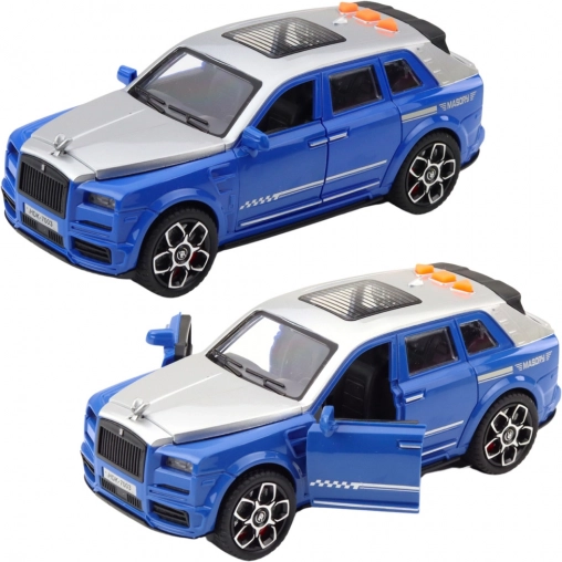 Model je izdelan iz trpežnih in varnih materialov ter zvesto posnema videz luksuznega SUV vozila. Zahvaljujoč zadnjemu pogonu je dovolj, da avtomobilček rahlo potisnete, da se samodejno premika naprej, kar spodbuja aktivno sodelovanje otrok.