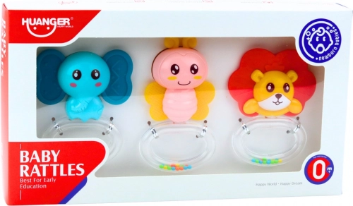 Ropotuljice imajo žive, privlačne barve, ki pritegnejo pozornost dojenčka, barvne kroglice v notranjosti pa ob stresanju ustvarjajo nežne zvoke. Komplet je zapakiran v prozorni škatli, zato je odlično darilo za novorojenčka.