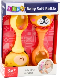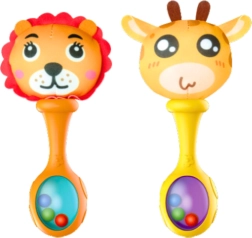Set glogov je zasnovan z mislijo na potrebe rastočega otroka. Ima ergonomsko obliko, prilagojeno majhnim rokam, in mehak tekstilni površino, ki je prijetna na dotik. Žive barve in motivi živali, kot sta lev in žirafa, takoj pritegnejo pozornost otroka in spodbujajo njegove čute.