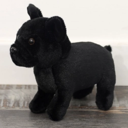 Črn plišast kužek izstopa s svojim ljubeznivim obrazom, stoječimi ušeski in stabilno konstrukcijo, zaradi katere je realističen in očarljiv. Zaradi kompaktne velikosti se enostavno prilega v otroške roke, kar omogoča enostavno nošenje, stiskanje ali postavitev v posteljico. Odličen je kot spremljevalec pri spanju, vsakodnevnih igrah ali kot dekorativni element v otroški sobi.
