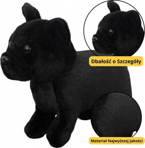 Ljubek črn plišast kužek je idealen spremljevalec za vsakega otroka. Narejen iz mehkega, nežnega pliša zagotavlja udobje in je varen za otroško kožo.