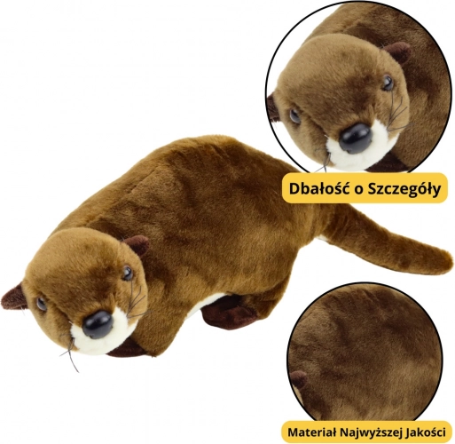 Plišasta vidra je skrbno izdelana iz mehkega, na otip prijetnega pliša v toplem, temno rjavem odtenku. Njena elegantna oblika, okrogel smrček in dodelani detajli, kot so brčice, nežna ušesa, tačke in dolg rep, igrači dajejo naraven videz in vzbujajo topla čustva na prvi pogled.