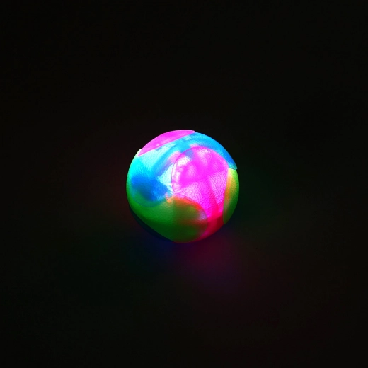 Barvna poskakujoča žogica s svetlobnim učinkom prinaša zabavo za vse starostne skupine! Ob udarcu ob trdo površino začne barvno utripati, kar je idealno za vizualno stimulacijo in koordinacijo otrok.