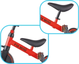Trike Fix Mini ponuja tri načine vožnje: poganjalec s tremi kolesi za najmlajše, klasični tricikel s pedali na sprednjem kolesu in vadbeni način z združenima zadnjima kolesoma za urjenje ravnotežja pred prehodom na dvokolo. Zahvaljujoč hitrim spremembam konfiguracije kolo v hipu prilagodite starosti in sposobnostim otroka.