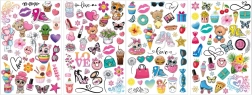 Razveselite otroke s tem kompletom otroških tetovaž, ki vsebuje več kot 70 različnih tetovaž na dveh listih velikosti 20x13 cm.