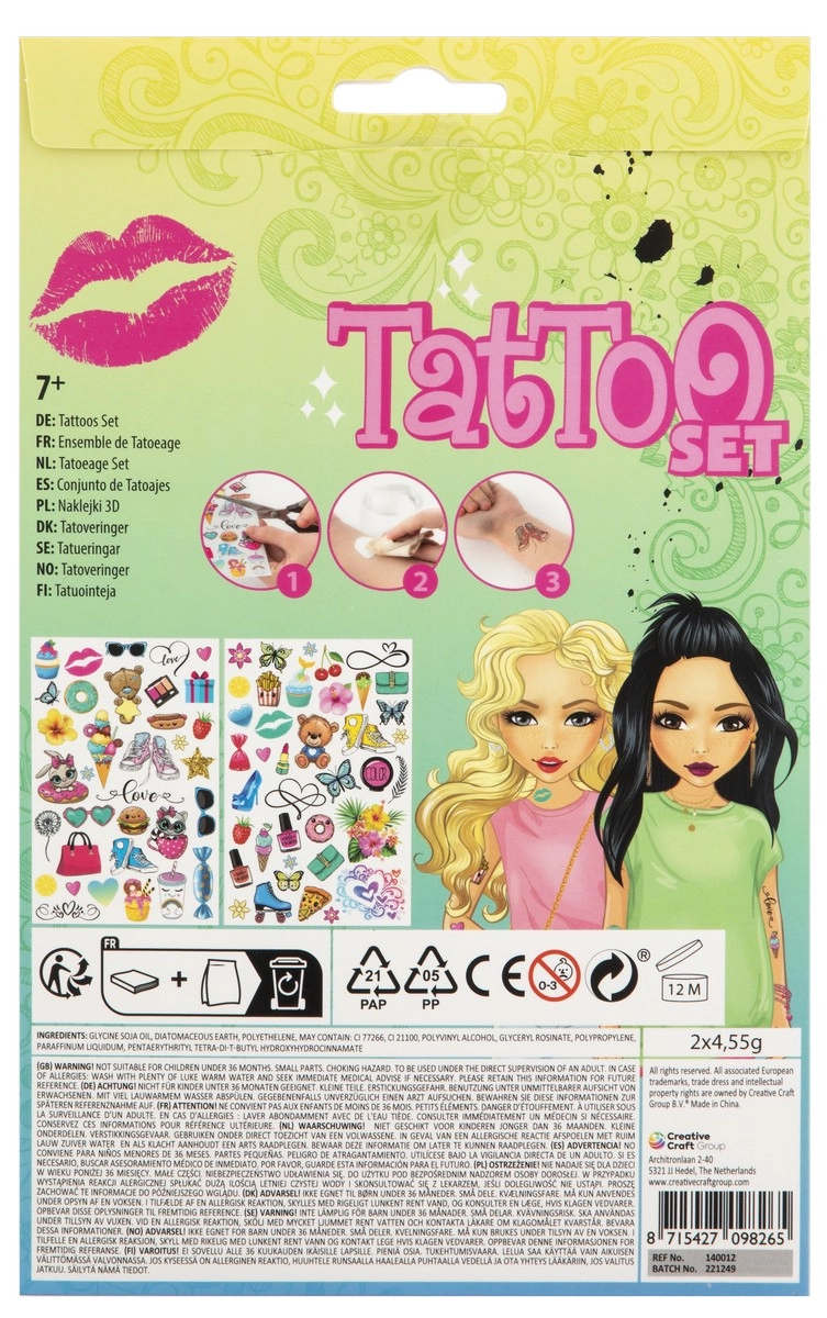 Spodbujajte ustvarjalnost svojih otrok s tem čudovitim kompletom tetovaž. Vsak list vsebuje pestro paleto različnih motivov, ki jih bodo otroci oboževali.
