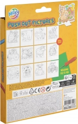 Motive lahko najprej pobarvate po predlogi na embalaži ali po lastni domišljiji. Nato motive preluknjajte na označenih mestih s priloženim peresom/prebadalom in ustvarite lepo prebadajoče motive.