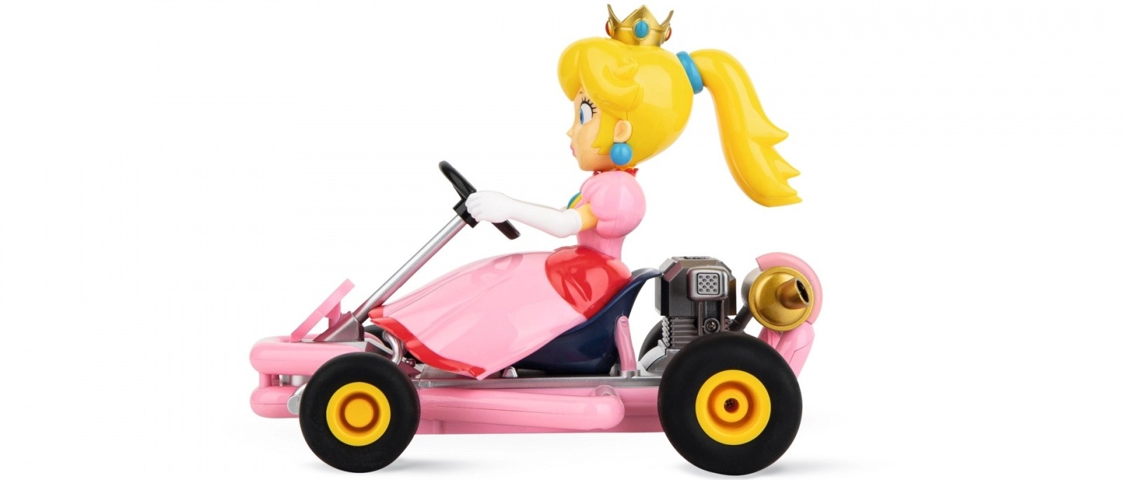 Uživajte v rožnatih dirkaških pustolovščinah z daljinsko vodenim vozilom Mario Kart podjetja Carrera RC v merilu 1:18. Princesa Peach štarta v svojem novem gokartu, pripravljena na vsako dirkalno stezo, z največjo hitrostjo 9 km/h in dolžino 21 cm.