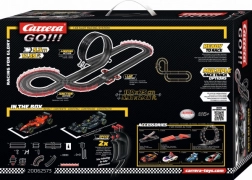 Set je kompleten in pripravljen za vožnjo: vsebuje napajalni del, mehanski števec krogov, dva krmilnika s funkcijo Turbo, zanko, križišče, ograje in opore. Analogni sistem CARRERA GO!!! je primeren za otroke od 6 let, a bo navdušil tudi odrasle ljubitelje motošporta.