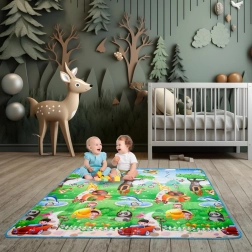 Ta zložljiva podloga iz trpežne EPE pene je idealna kot preproga za otroško sobo ali igralni kotiček. Zahvaljujoč dvostranskemu potisku združuje zabavo in učenje – otroci med igro utrjujejo črke, številke in živalice.