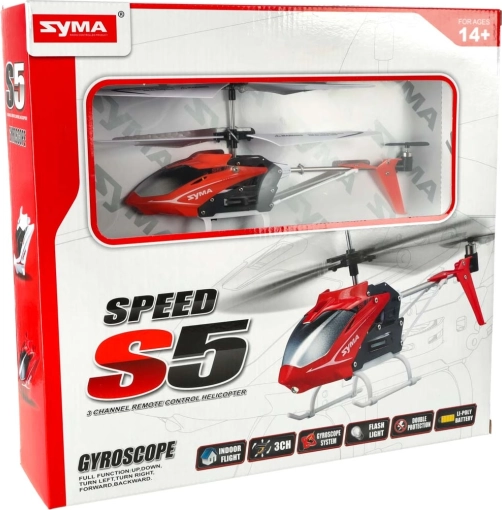 Lahek in trpežen daljinsko voden helikopter SYMA S5 3CH je idealen za začetnike in otroke. Ponuja stabilen let zahvaljujoč žiroskopu, preprosto upravljanje s 3 kanali in čvrsto aluminijasto-plastično konstrukcijo. Pripravljen na let takoj po odvijanju iz škatle, z dosegom do 20 m in udobnim polnjenjem prek upravljalnika.