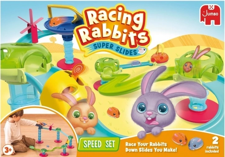 Zgradite tobogan iz kompleta Speed in naj zajčki tekajo! Postavite enega od dveh prikupnih zajčkov na vrh lijaka in pozorno opazujte, kako se spušča navzdol!
