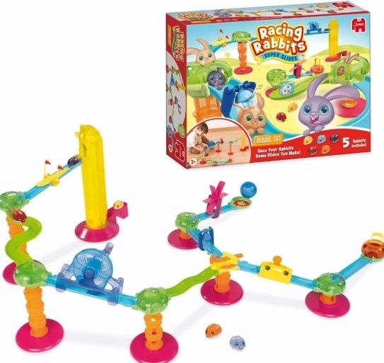Konstrukcijski komplet Deluxe Racing Rabbits ponuja ure kreativne zabave za otroke. Sestavite svojo lastno dirkalno stezo z deli, ki se preprosto povezujejo. Postavite enega od 5 ljubkih zajčkov v dvigalo, ga dvignite in opazujte, kako se spušča po progi!