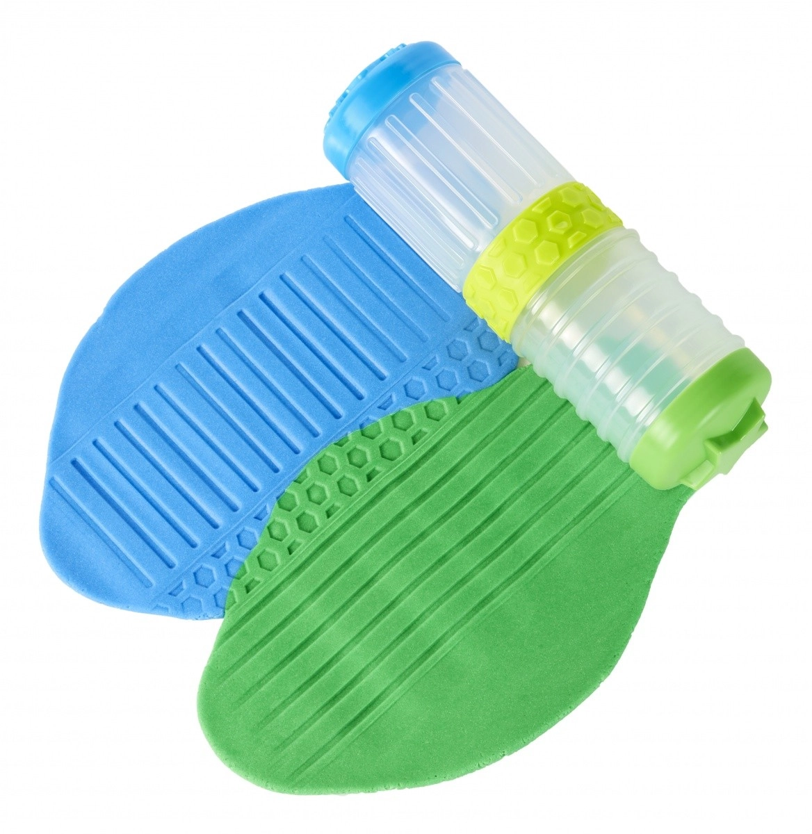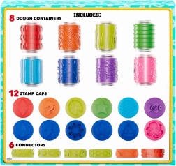 Vsak vsebnik je del igre, omogoča ustvarjanje zanimivih vzorcev ter uporabo žigov in drugih dodatkov. Set vsebuje 8 tub plastelina, 12 pokrovčkov z zabavnimi žigi in 6 konektorjev z različnimi vzorci za kreativno ustvarjanje.