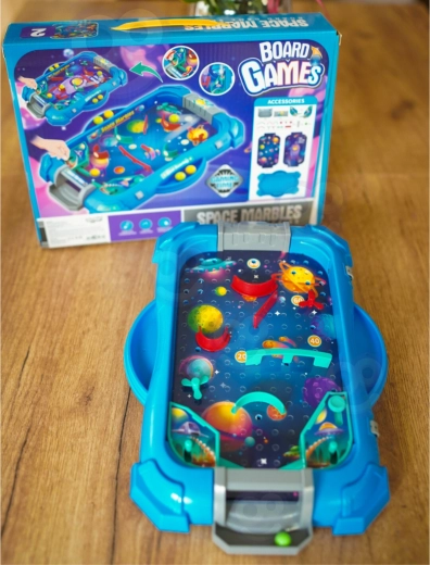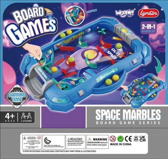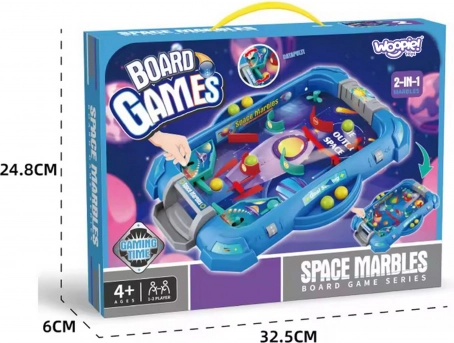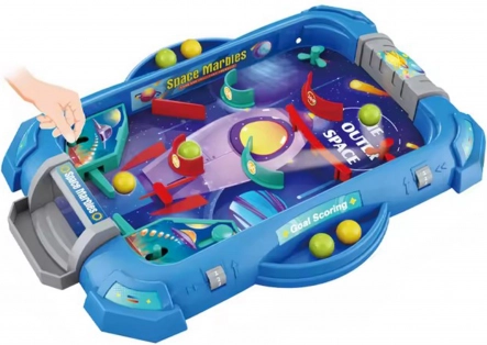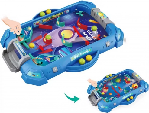 Zabavna namizna fliper igra za otroke WOOPIE prinaša vesoljsko pustolovščino v kompaktni izvedbi. Ponuja 2 igralni postavitvi, enostavno montažo in možnost igranja solo ali v skupini. Barvni elementi, delujoči ročici in izstreljevalnik spodbujajo koordinacijo oko–roka ter zagotavljajo veliko zabave pri seštevanju točk in podiranju rekordov.