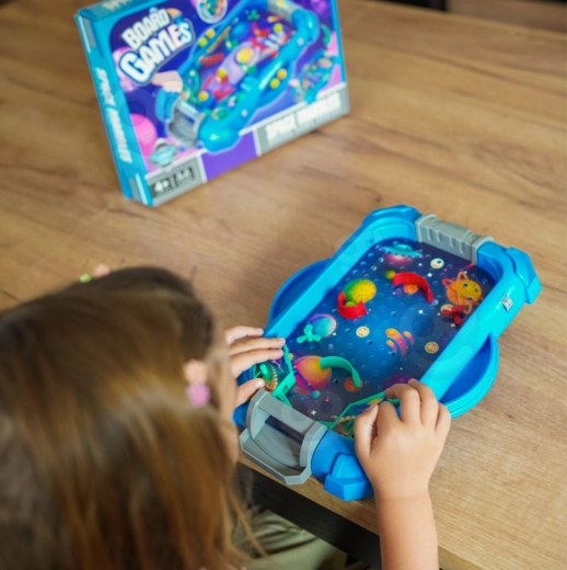 Odkrijte čar fliperja v otroški različici. Ta namizna igra z vesoljskim motivom znamke WOOPIE spominja na pravi fliper – z izstreljevalnikom, ročicama in točkovanimi tarčami. Zaradi preprostih pravil se igre zlahka udeležijo tudi mlajši otroci ter vadijo natančnost, odzivnost in načrtovanje.
