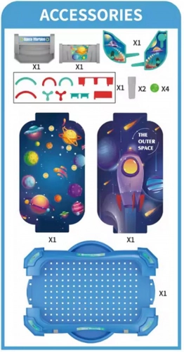 Model je DIY – ploščo si otrok preprosto sestavi sam, kar razvija fino motoriko in samostojnost. Dve različici postavitve ovir prinašata svež izziv pri vsaki igri, ne glede na to, ali igrate sami ali pripravljate mini turnir s prijatelji.