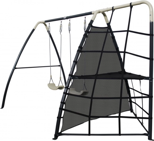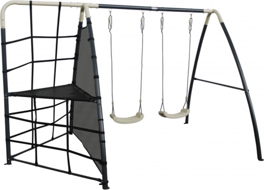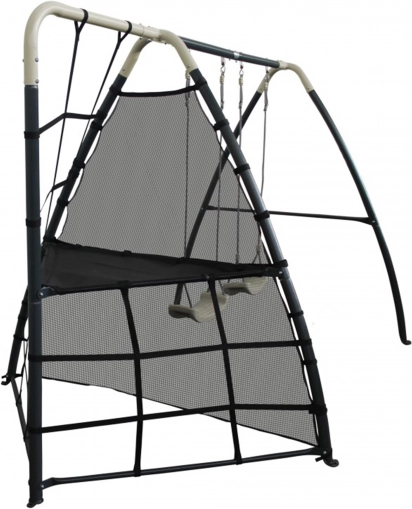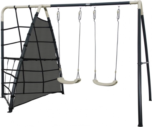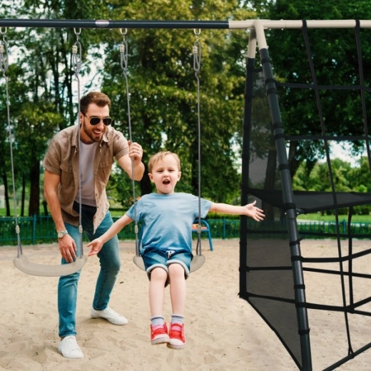 Posamezne komponente so zasnovane z mislijo na udobje in varnost. Močna sidra za tla zagotavljajo stabilnost, tudi ko se otroci razigrajo. Polipropilenska sedeža sta lahka, trpežna in enostavna za čiščenje. Ergonomska oblika in ustrezna globina plezalne mreže zagotavljata udobje in dodatno privlačnost med igro.