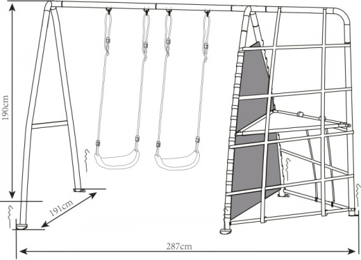 Montaža je preprosta, celotna konstrukcija pa se zlahka prilagodi prostoru na vrtu. Poskrbite za zdravo gibanje svojih otrok v njihovem lastnem igralnem kotičku.