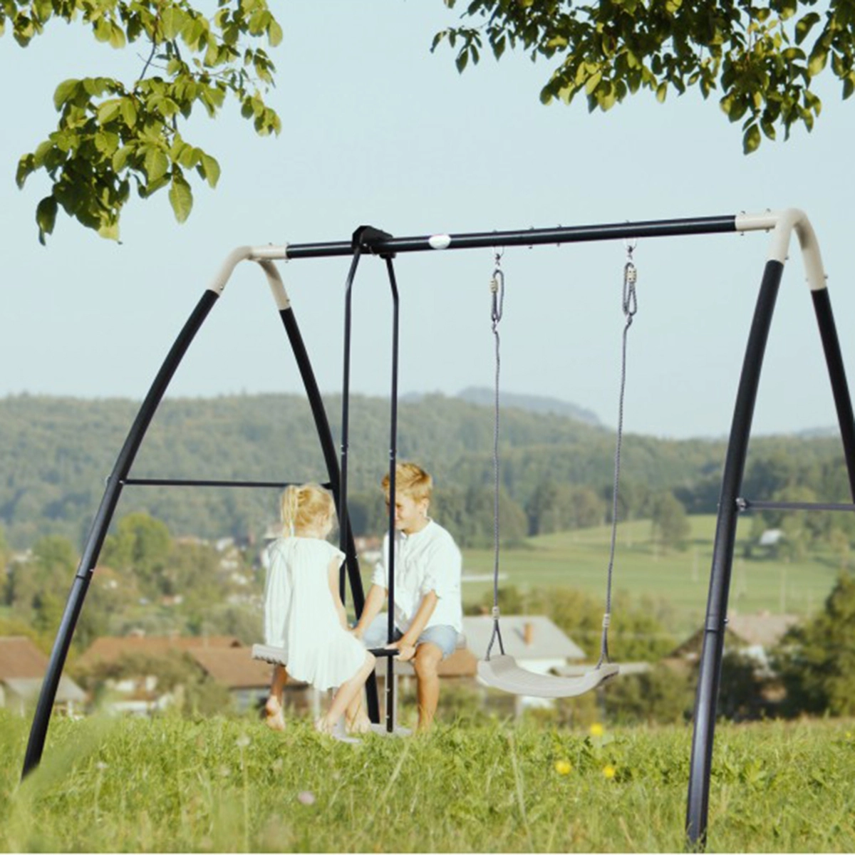 Gugalnica AXI je izdelana iz prašno lakiranega jekla, ki je pocinkano tako znotraj kot zunaj, kar zagotavlja dolgotrajno zaščito pred korozijo. Njena kompaktna velikost omogoča postavitev tudi na manjših vrtovih.