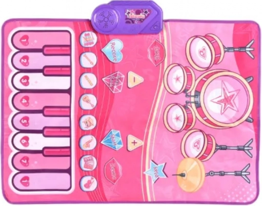 Odkrijte veselje do glasbe z otroško glasbeno podlogo WOOPIE 2v1. Velika mehka površina združuje klavirske tipke in območje bobnov, zato lahko otroci igrajo z rokami, nogami ali s priloženimi paličicami. Zahvaljujoč funkciji snemanja zlahka shranijo svoje prve melodije, medtem ko nastavljiva glasnost zagotavlja udobno igranje doma in na poti.