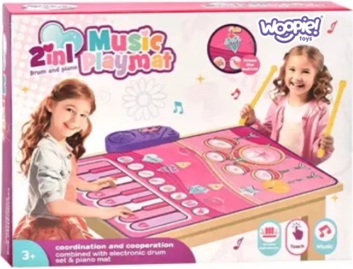 Interaktivna glasbena podloga 2v1 znamke WOOPIE spremeni vsako sobo v majhen studio. Otroci od 3 let uživajo v igranju na klavir in bobne, lahko snemajo lastne skladbe, trenirajo ritem ter razvijajo motoriko, sluh in kreativnost. Podloga je zložljiva in enostavno prenosna ter ponuja uravnavanje glasnosti in do 8 zvokov instrumentov.