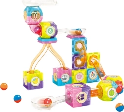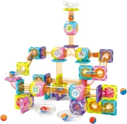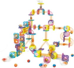 Ta pisana magnetna kroglična steza ponuja neskončne možnosti gradnje. Prozorni deli v mavričnih barvah spodbujajo otroke k eksperimentiranju, magneti pa konstrukcije trdno držijo skupaj. V kompletu so cevi, krivine, spojke in lijaki, ki omogočajo tekoč prehod kroglic.