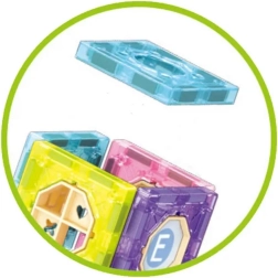 Otroci vadijo prostorsko mišljenje, načrtovanje in koordinacijo oko–roka. Zabavna oblika učenja podpira potrpežljivost, reševanje problemov in samostojnost. Barvite nalepke dodatno omogočajo personalizacijo gradenj in razvoj domišljije.