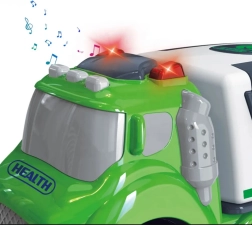 City Truck Smetarski tovornjak je popolna igrača za vsakega malega ljubitelja motorjev in mestnih posebnih vozil. Smetarski tovornjak je opremljen z realističnimi zvokovnimi in svetlobnimi efekti, ki se aktivirajo s pritiskom na gumb na strehi vozila.