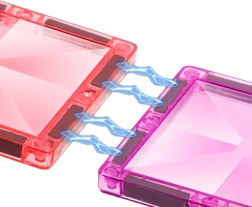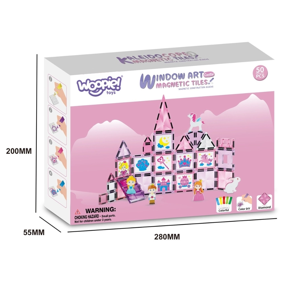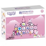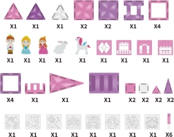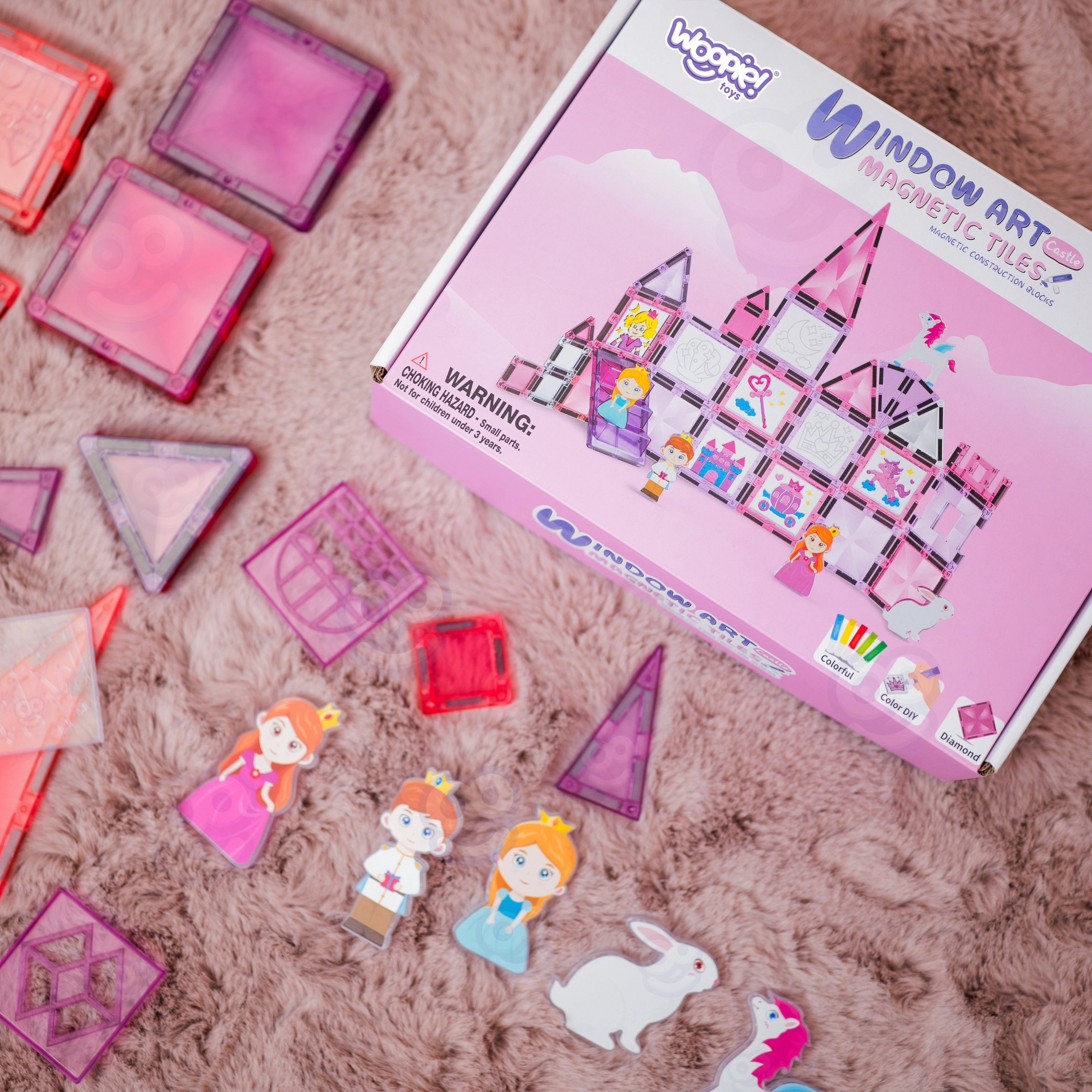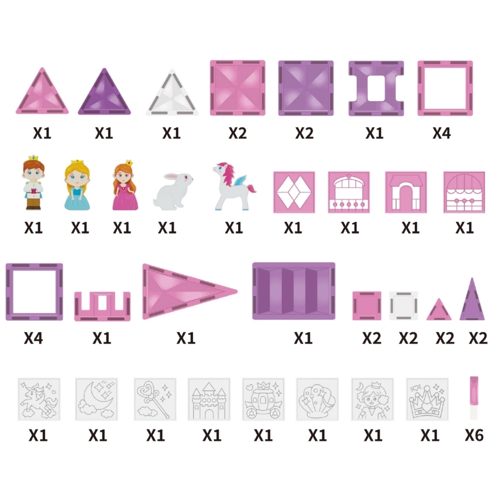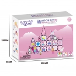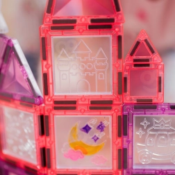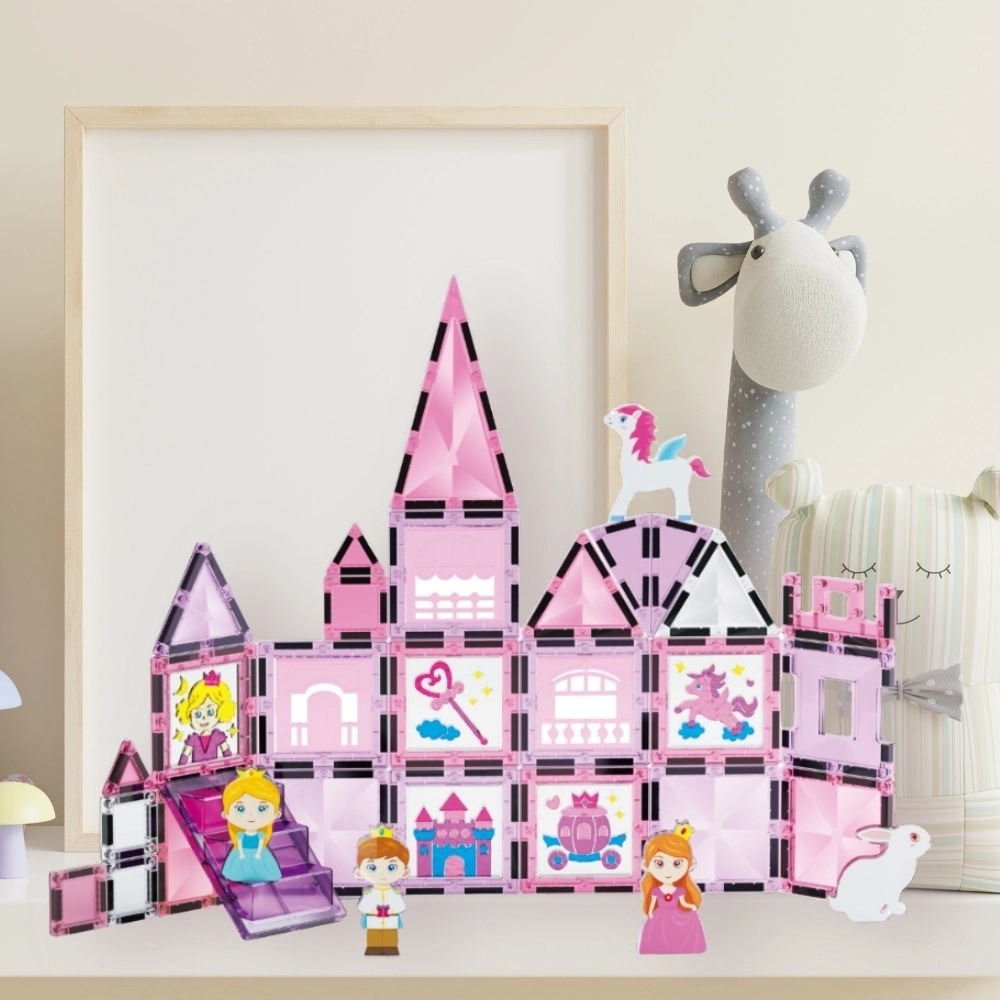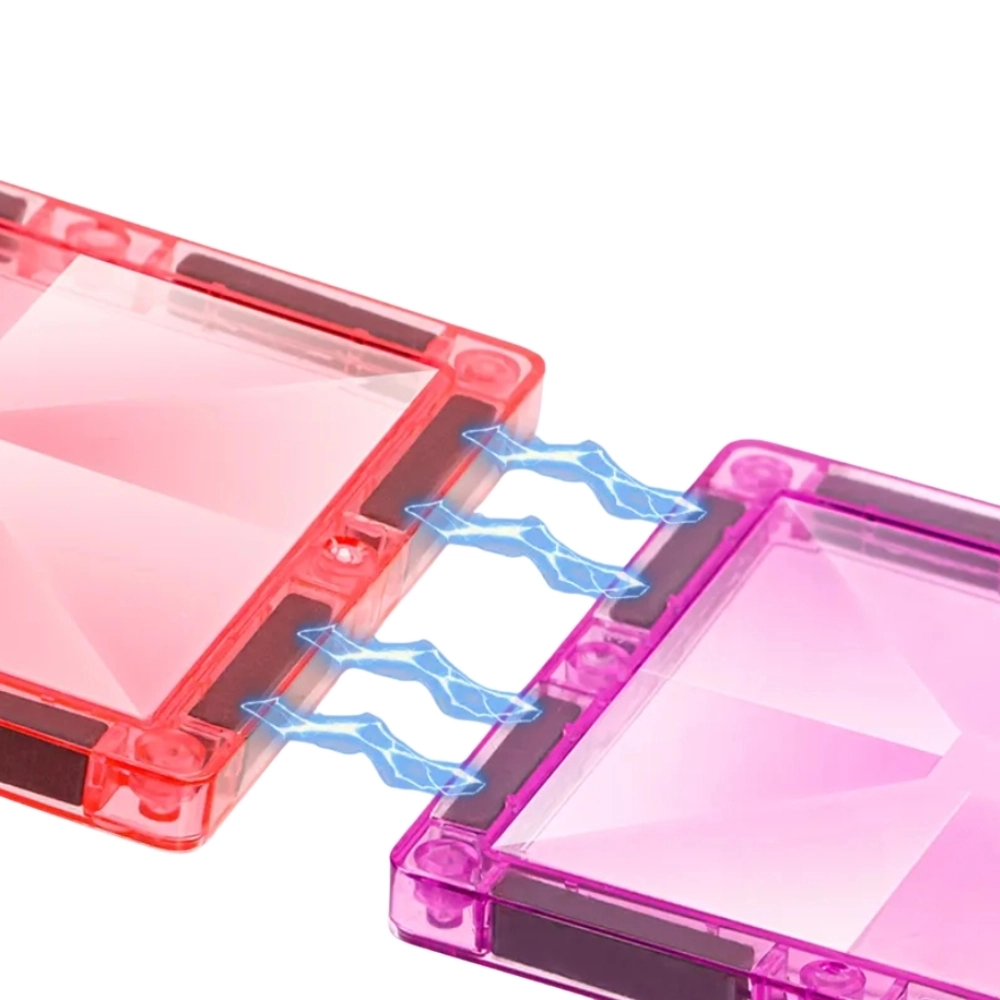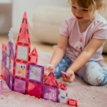 Ta rožnato-vijoličasta zbirka magnetnih ploščic in dodatkov spremeni otroško domišljijo v prave palače, stolpe in portale. Deli z okni, strehami in dekorativnimi potiski se zlahka povezujejo zahvaljujoč močnim magnetom, zato konstrukcije ohranijo obliko, otroci pa se lahko igrajo brez frustracij.