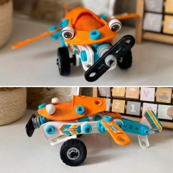 Barvit konstrukcijski komplet letala znamke Woopie je odlična izbira za male konstruktorje. Otroci iz posameznih delov sami sestavijo model s premičnim kolesom in propelerjem, s priloženimi orodji in nalepkami. Igrača podpira fino motoriko, logično razmišljanje in osnovne tehnične veščine, izdelana je iz vzdržljive plastike in mehke gume za varno igro.