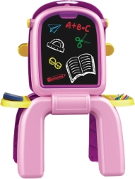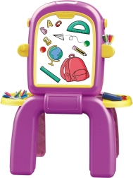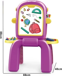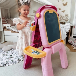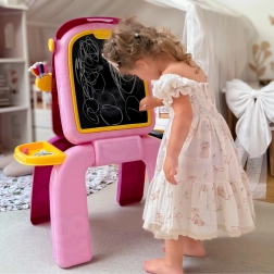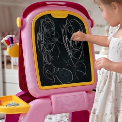 Dvostranska tabla WOOPIE prinaša otrokom zabaven in izobraževalen prostor za risanje, pisanje in prve šolske vaje. Ena stran je bela in suhosledna za pisanje z markerji, druga stran kredna za klasično risanje s kredami. Zaradi stabilne osnove in stranskih predalčkov imajo otroci vse pri roki in se lahko popolnoma posvetijo ustvarjanju.