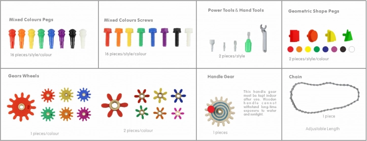 Opomba: Komplet ne vsebuje stolov in predalčkov, prikazanih na glavni sliki! Zatiči so večinoma na voljo v 8 barvah.